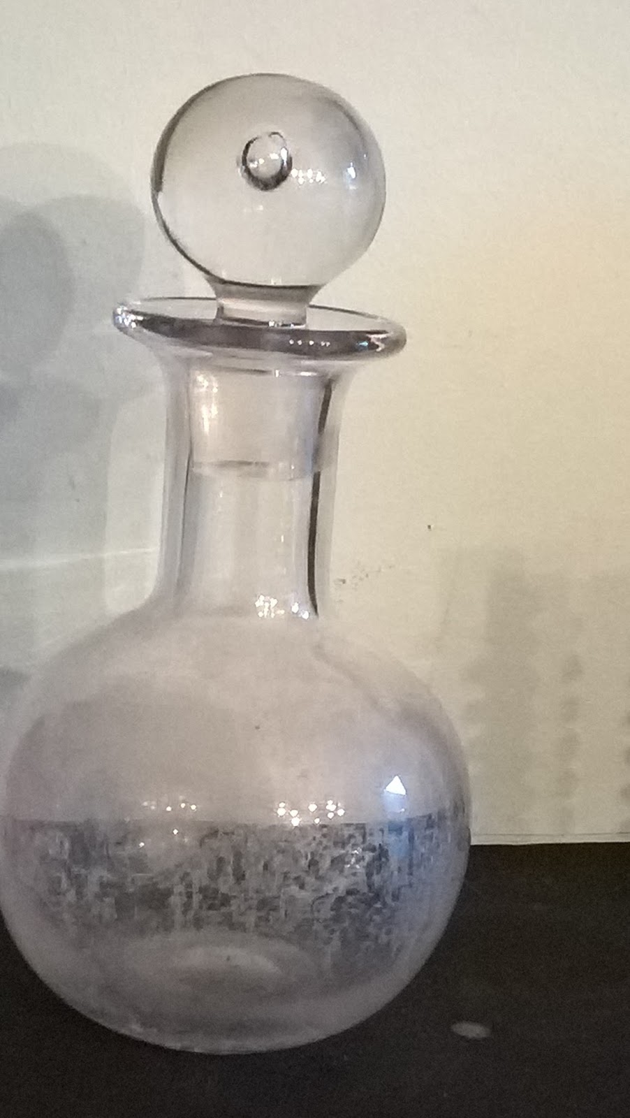 This glass decanter is sadly marred by limescale, but I love its fat bellied shape and the gorgeous heavy stopper.