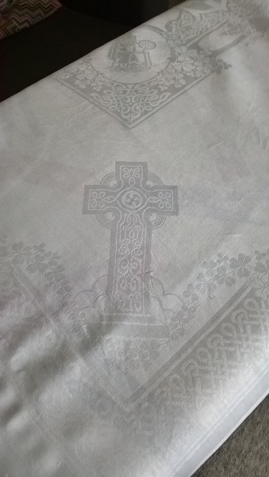 Irish linen double damask tablecloth (impossible to photograph) has made the